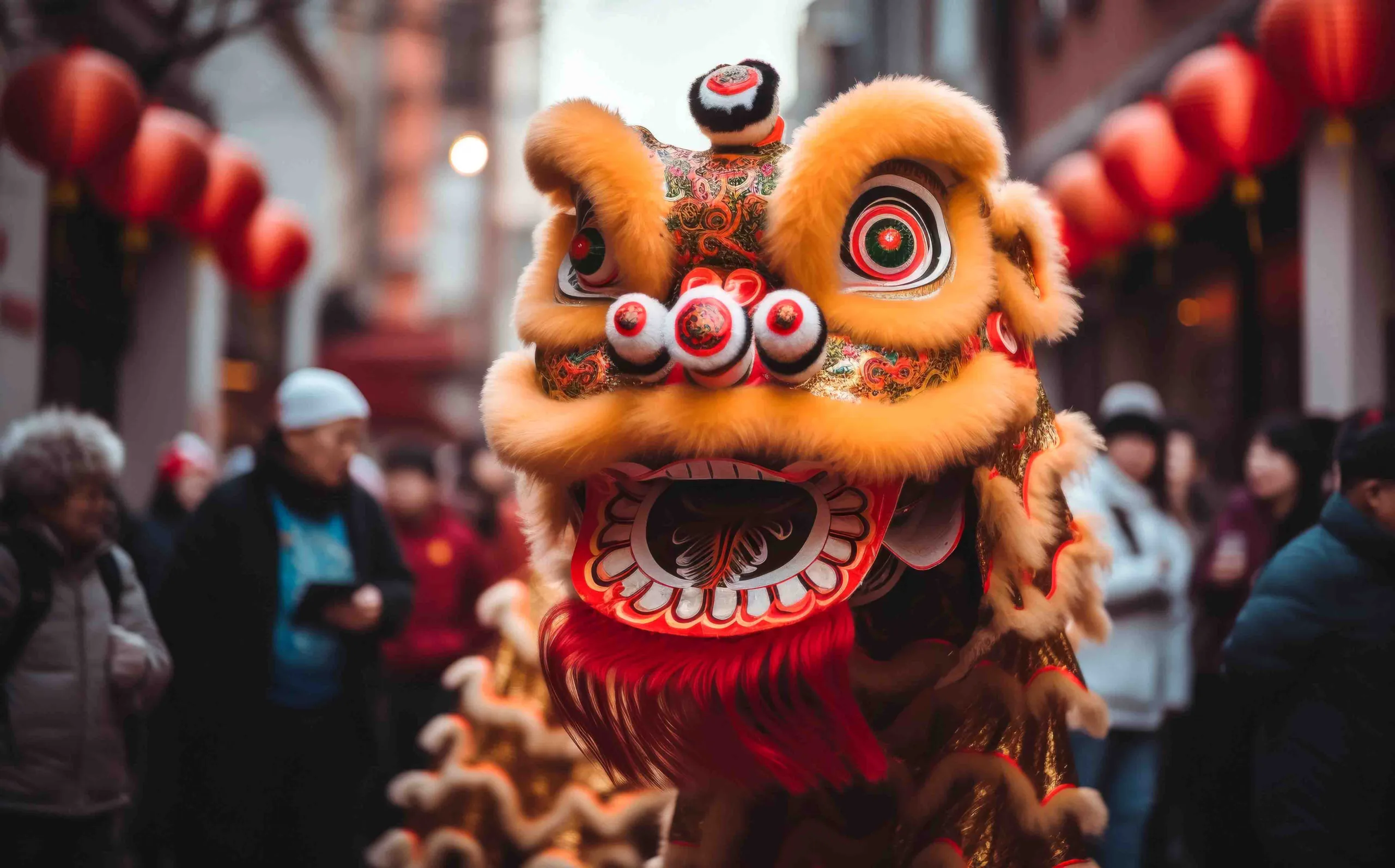 Esta festividad está llena de tradiciones y simbolismo. Las calles y hogares se decoran con farolillos rojos y carteles con mensajes de buena suerte, mientras que los mercados se llenan de adornos y productos típicos. Una de las costumbres más importantes es la cena de Nochevieja, en la que las familias se reúnen para compartir platos tradicionales como los dumplings (jiaozi, 饺子) y el pescado al vapor, considerado un símbolo de abundancia.