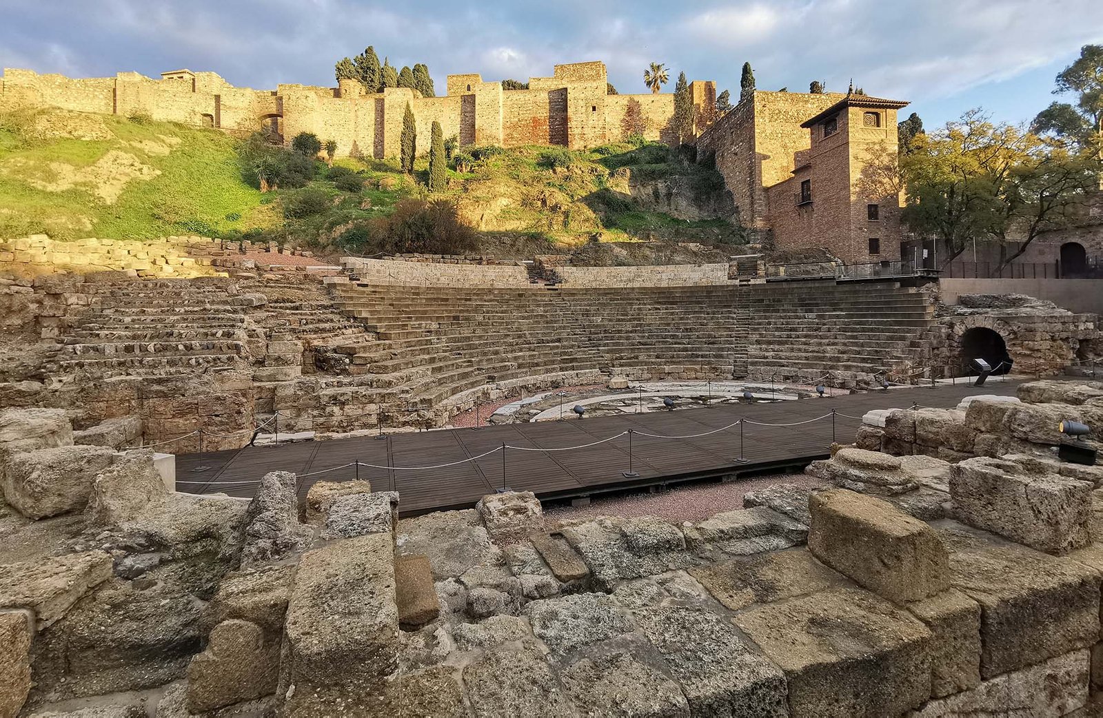 El Teatro Romano, construido en el siglo I d.C. y descubierto en el año 1951, se sitúa al pie de la Alcazaba en pleno centro histórico de Málaga.